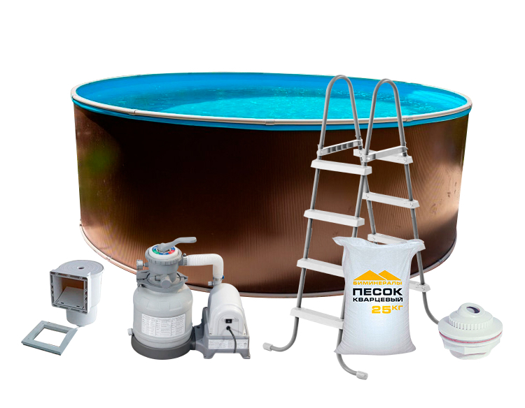 Бассейн Лагуна морозоустойчивый 3.50х1.25м круглый шоколад (песчаный фильтр, лестница, кварцевый песок,скиммер, форсунка) 35011-02