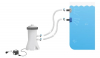 Насос подключается к штатным отверстиям бассейна при помощи двух гофрированных шлангов. Вода поступает по шлангу внутрь фильтрующего насоса, проходит через бумажный картридж (тип картриджа 29000), оставляя грязь на нем, и поступает обратно в бассейн.