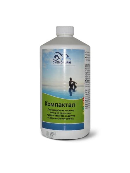 Компактал предназначен для основательной чистки открытых бассейнов после длительного бездействия (весенней). Легко растворяет застарелые загрязнения, удаляет известковые отложения, ржавчину и другие минеральные отложения. Препарат высоко концентрирован, поэтому применять его рекомендуется только в разбавленном виде. Не разъедает хлоркаучуковые краски, синтетические смолы и пластик. Не рекомендуется применять к предметам из нержавейки. В составе серная кислота.